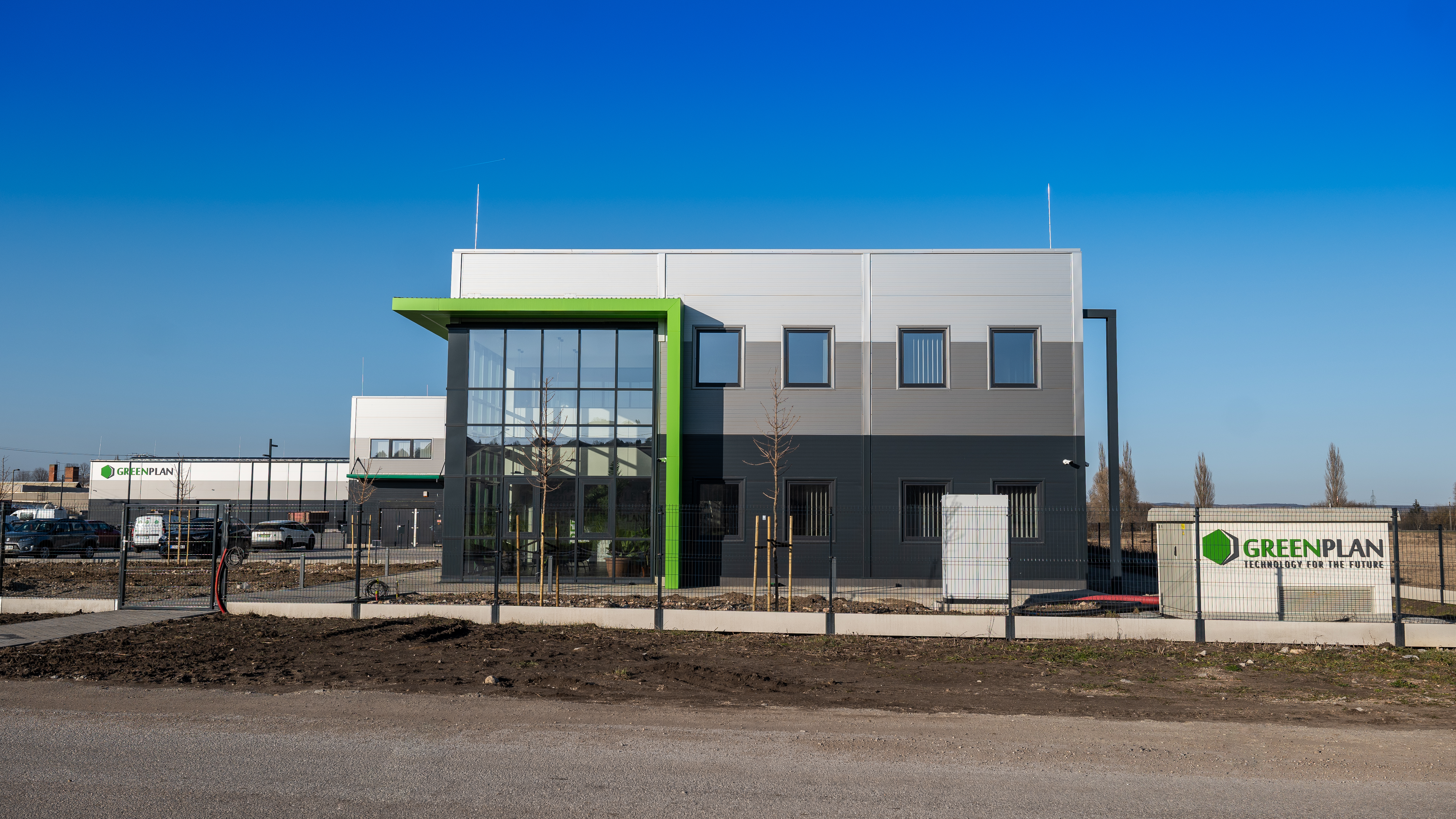 Idén márciusban készült el a Green Plan Kft. napelempark gyártásához épített összeszerelőcsarnok, amelynél 4000 m2 raktárterület, 2000 m2 műhely rész, illetve 500 m2 iroda rész burkolására volt szükség. A projekt során az esztétika mellett fontos szempont volt a minőség is, így a szakemberek a Lindab PIR szendvicspanelt és LTP 150-es trapézlemezt választották. Az épületegyüttes nemcsak az óriási méretével, hanem korszerű burkolási megoldásaival is innovatív hatást kelt.