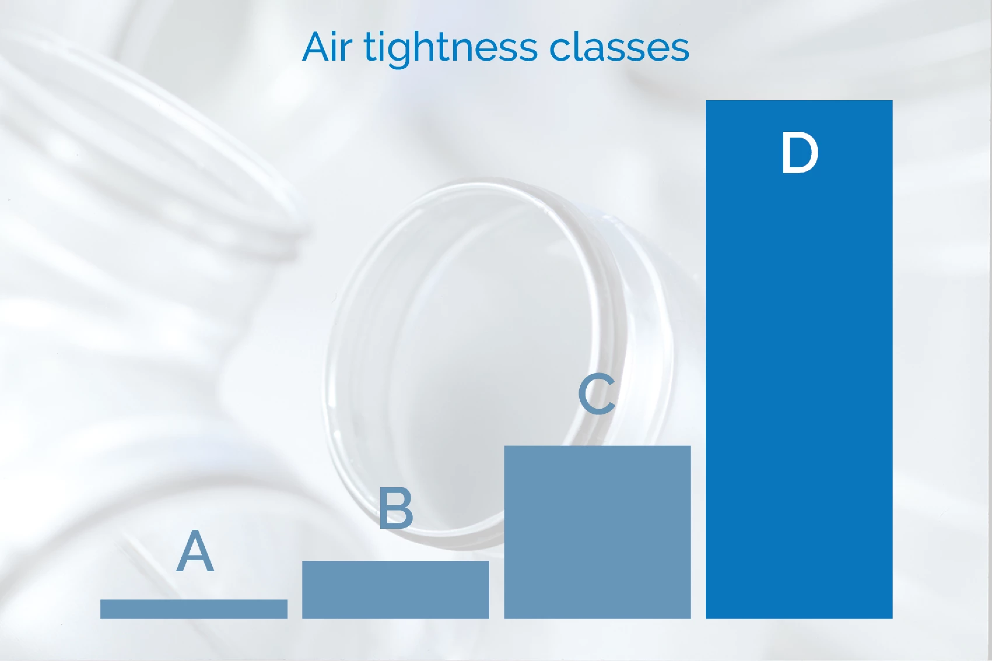A D légtömörségi osztály 3-szor jobb, mint a C osztály, amely viszont 3-szor jobb, mint a B osztály, és így tovább. A magasabb légtömörségi osztály választása tehát jelentősen javítja az energiahatékonyságot.
