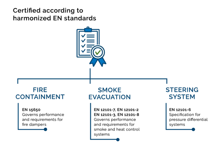 A Lindab Protect olyan komplett megoldást kínál, amely meghatározott ideig képes ellenállni a nagyon magas hőmérsékletnek anélkül, hogy elveszítené előnyeit. Megoldásunk minden egyes elemét a legszélsőségesebb környezetben teszteltük, és a tűzvédelemmel ellátott szellőztetőrendszerekre vonatkozó legszigorúbb szabványoknak megfelelően tanúsítottuk.