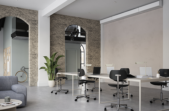 A Plafond XD rugalmas elhelyezési lehetőségeket kínál, teljes mértékben az adott helyiség építészeti és műszaki adottságaihoz igazítható. Felszerelhető a mennyezetre, a mennyezethez közel a falhoz rögzítve, a szoba közepére, vagy a megfelelő számú gerendával akár faltól falig terjedő burkolattal. Az optimális szellőzés és komfort már az esztétikai szempontok sérülése nélkül is megvalósítható.