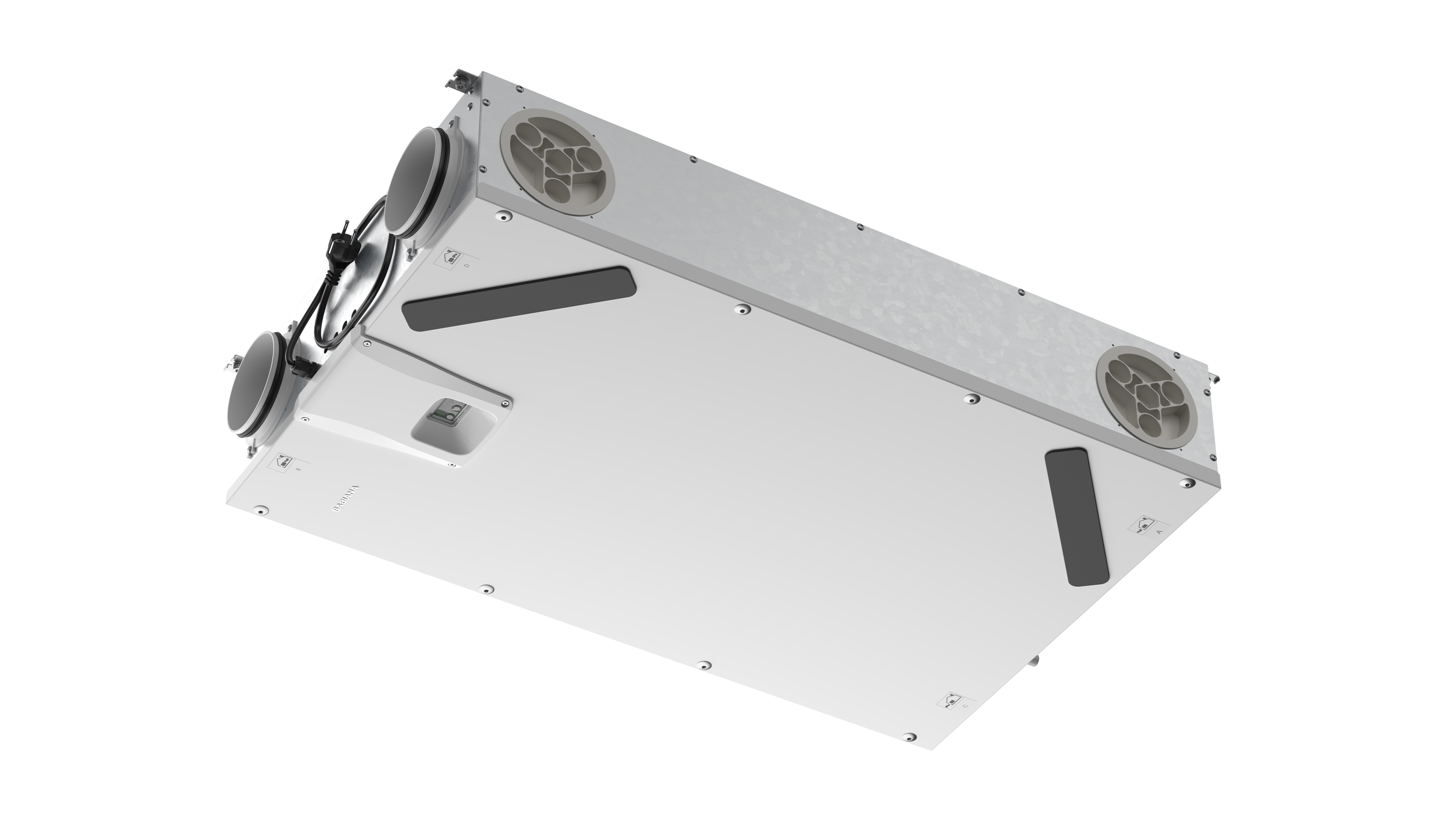 - Magas hatásfokú műanyag levegő-levegő keresztáramú hővisszanyerő és automatikus 100% bypass.