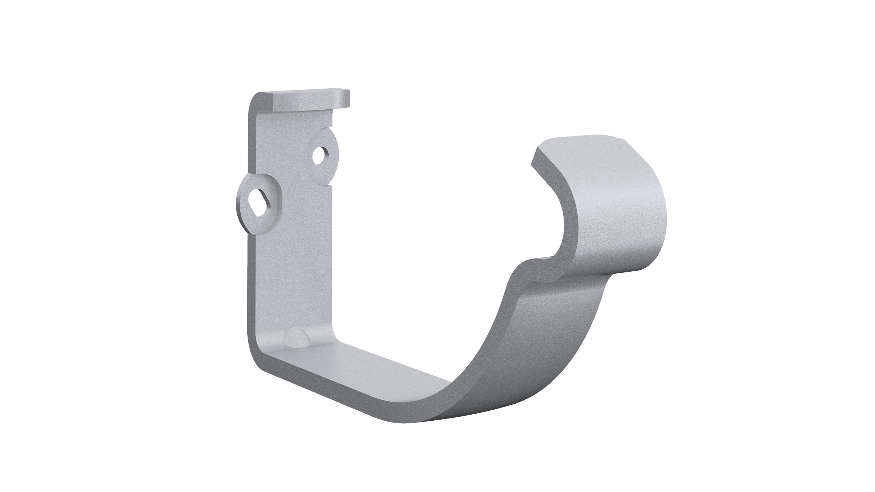KFK csatornatartó bepattintós rögzítéssel, félkörszelvényű függő ereszcsatornához (Elite és Magestic típushoz) függőleges homlokdeszkához. A csatornatartó 5 mm vastag horganyzott acél szalagból készül porszórt felülettel. A porszórt felület festése tökéletesen illeszkedik a csatornarendszer többi eleméhez, nincs árnyalati eltérés a csatornaelemek és a csatornatartó vas színe között.